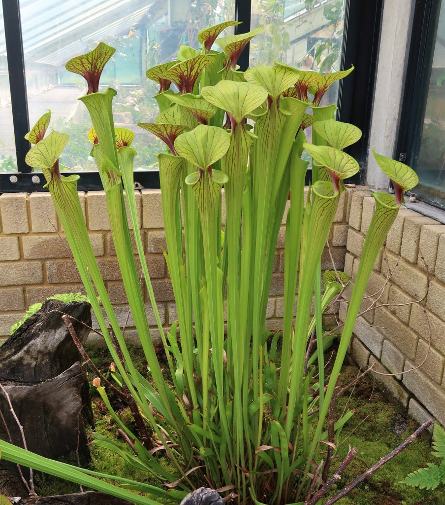 N. American pitcher plants have similar growing conditions to the Venus flytrap. Some are short and squat like Sarracenia purpurea and others like S. flava and S. leucophylla can reach almost 4 feet high! These do a great job catching wasps and moths.
