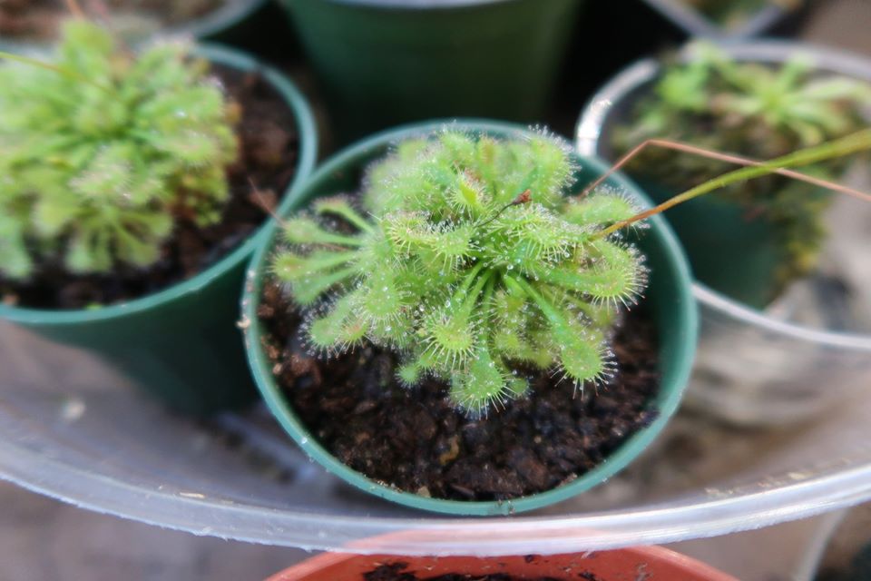 Sundews – especially the cape sundew (Drosera capensis), are a great beginner CP. These grow year-round, do not require a dormancy period, and unlike the Venus flytrap, they can be grown indoors on a sunny windowsill. The sticky elongated leaves are really good at trapping fungus gnats and fruit flies.