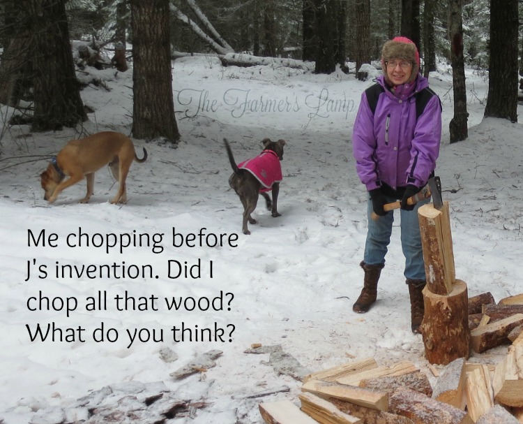 First, you have to have the right set of tools for the job, which include a wood splitting axe, maul, wedge, sledgehammer, and a surface to split your wood on. Some people use hydraulic wood splitters, but we don’t. Since our move to northern Idaho, we’re splitting 16-inch rounds of Tamarack Pine instead of the oak we split down south. This wood splits so easily it doesn’t make sense to us to use the gasoline it would take to run a wood splitter. The best way to split wood for us is by hand. The way we do it is fast enough to stay on top of the wood stove’s hunger and we only have to split wood once a week. Did I mention we really do enjoy the exercise and relaxation that comes from splitting our own firewood?